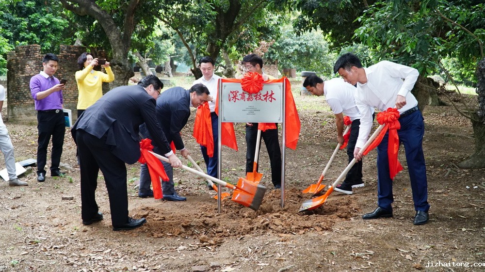 金晋集团此次赞助的荔枝树有150棵。揭牌仪式上,各企业先在工作人员准备好的箱子中随机抽取属于自己企业的荔枝树号码,随后各自前往荔枝林中找到自己号码的荔枝树,并把企业铭牌挂到树上,企业专属荔枝树就此诞生。荔枝树是一种长寿果树,几百年甚至上千年的老树仍能结出累累果实。深商荔枝林的诞生,寓意着深商的企业像长寿的荔枝树一样,屹立千年之后,仍能硕果累累。