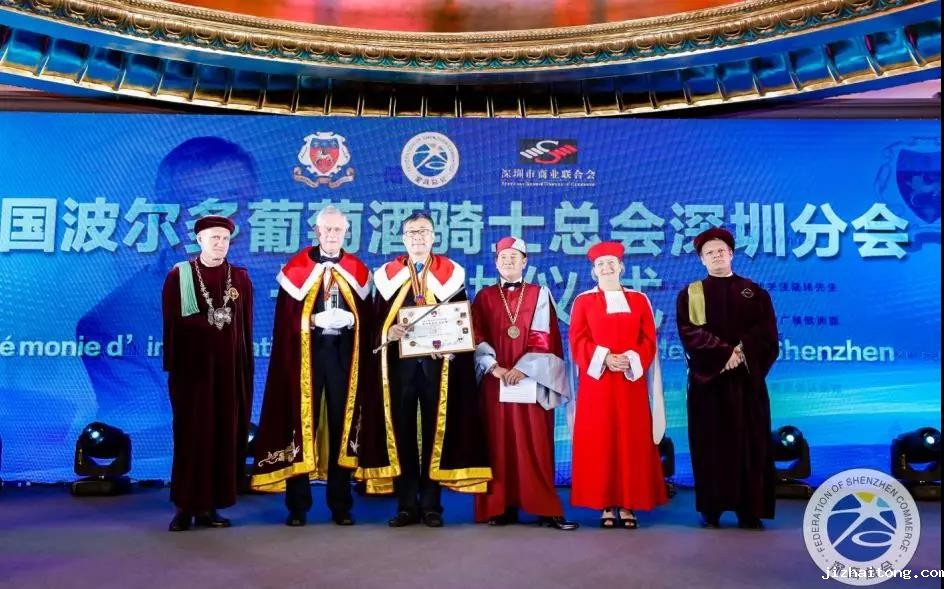 2019年,波尔多骑士总会与深商会强强联合,在深圳设立骑士分会,并甄选地位尊崇、成就卓越且热爱波尔多葡萄酒文化的杰出人士成为骑士会成员。本次活动,举行了深圳骑士会授勋仪式,由法国波尔多骑士会总会会长弗朗西斯·博特米先生为深圳骑士会会长及成员授勋。